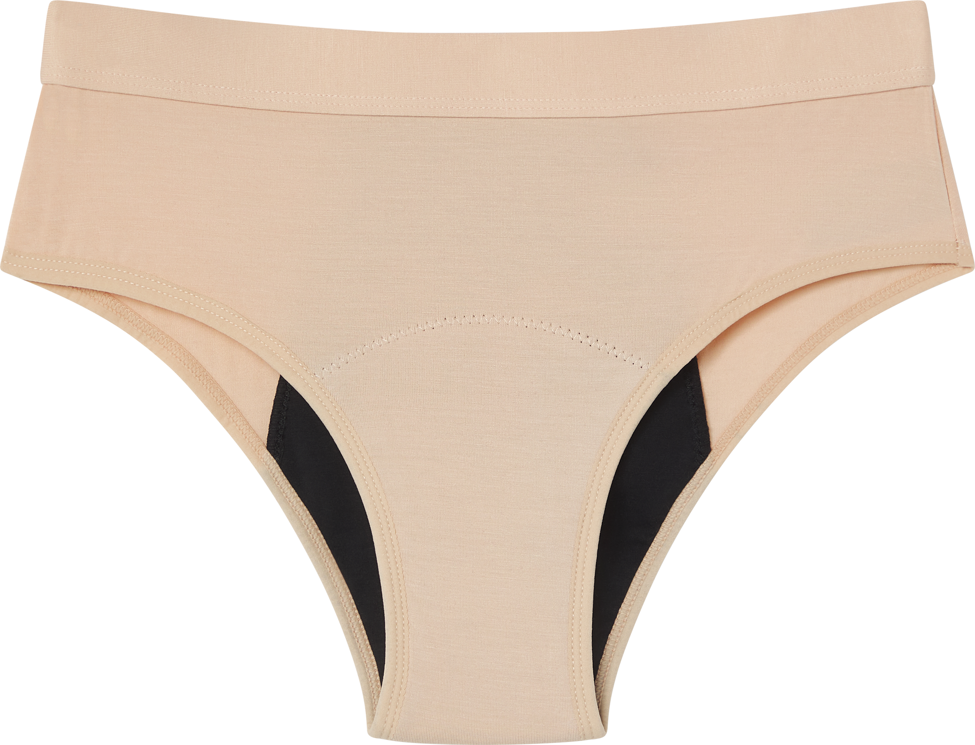 La Dapanty Normal llega hasta debajo del ombligo, por lo que es perfecta para combinar con jeans, para ir al gimnasio o simplemente para estar cómoda en casa. La cintura elástica proporciona un buen soporte, mientras que el forro absorbente cubre también toda la zona trasera.