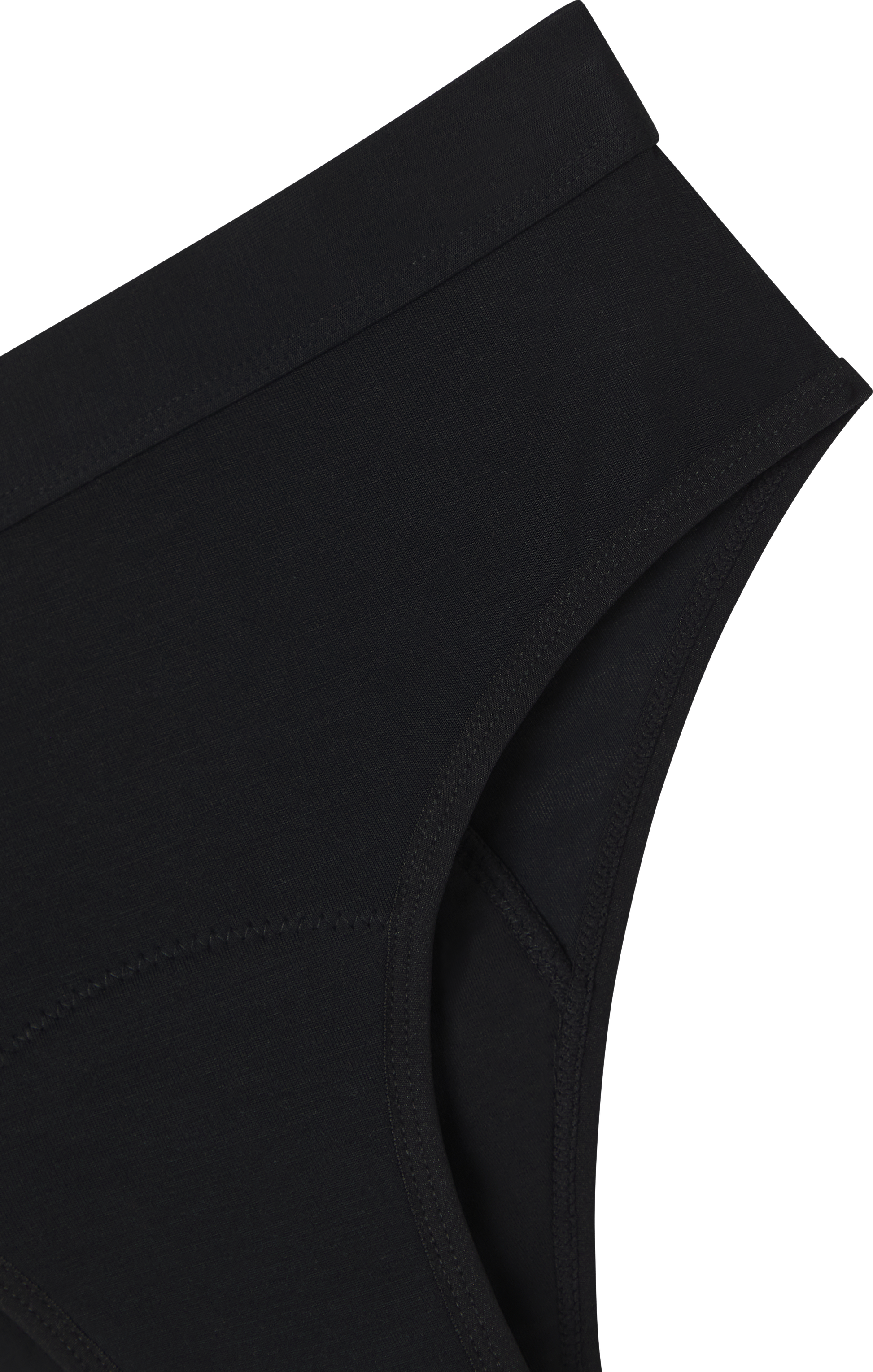 Por ello y por su tamaño, son ideales para usarlas después de los primeros días de la regla, cuando el flujo aún es normal pero no excesivo (solo nos referimos a la comodidad en cuanto a presión y forma de la braguita, pero también es válida para los primeros días de sangrado, porque es de alta absorción). Ejercen menos presión en el bajo vientre y por tanto dan mayor sensación de frescor. No te preocupes por las fugas ya que la pernera permite que la braguita se ajuste cerca de la ingle, sin roce, pero evitando que la Dapanty se deslice hacia los lados.